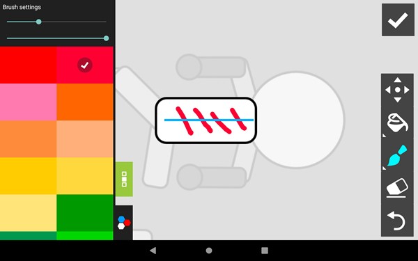1、在人人都能做动画2上做动画并不需要亲手绘画,只需通过操作模型的骨骼摆出各种动作就好。点击画布上方的绿色小人,即可打开模型库。点击模型的骨骼就可以让模型摆出各种动作。当动作摆好后,点击下方的箭头就能切换纸张了。