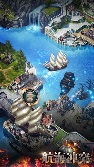 2、扮演领地领主,通过发展领地、收获资源、建造战舰、训练士兵,打造最强航海舰队,称霸海洋。