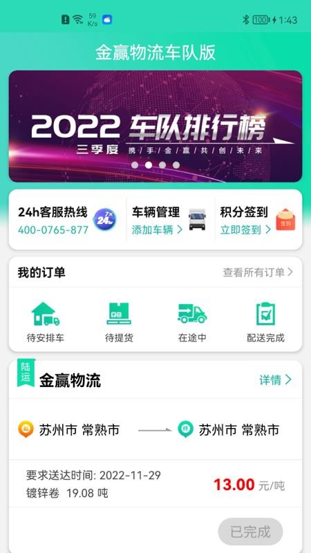 3、还能够支持司机在线管理货运订单,掌握运输各类货物的状态以及进度;